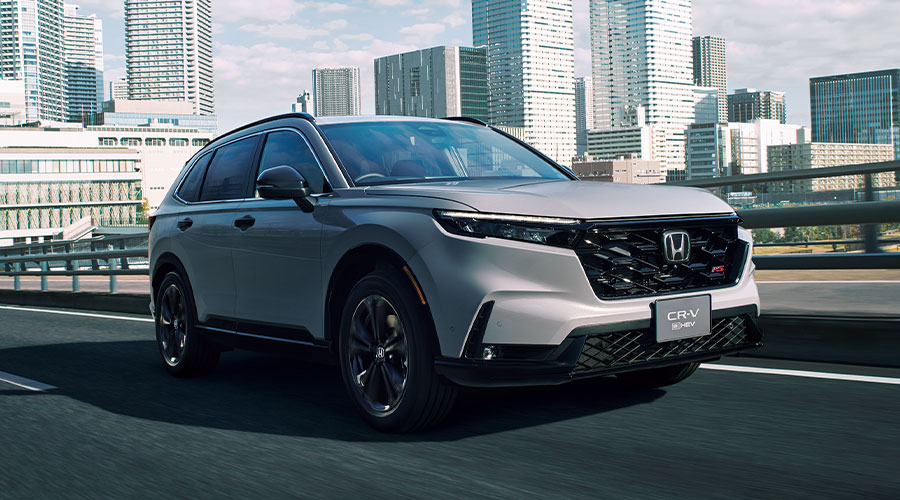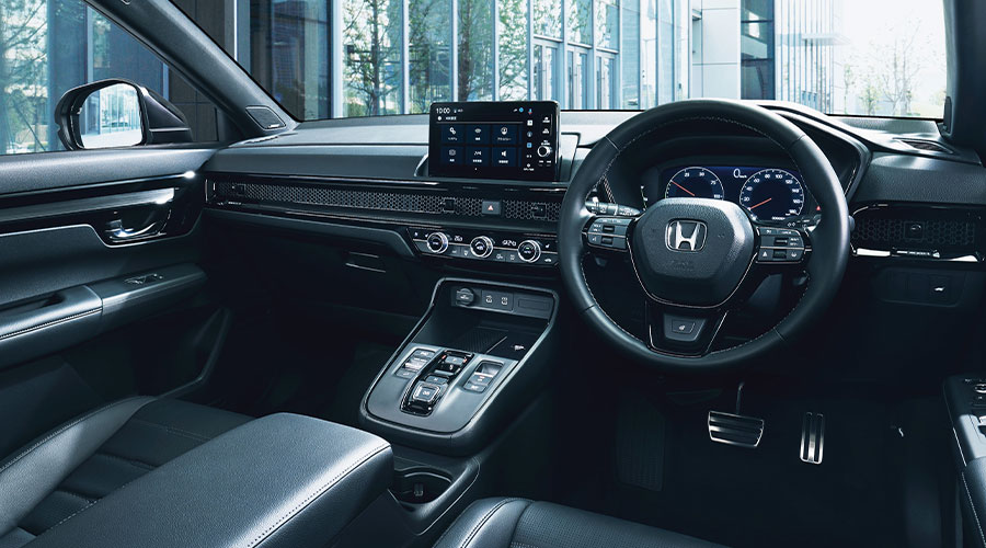 Photo上から:CR-V e:HEV RS BLACK EDITION ボディーカラーはスレートグレー・パール、CR-V e:HEV RS BLACK EDITION ボディーカラーはスレートグレー・パール ■メーター類は撮影のため点灯。■画面はハメコミ合成。 CR-V e:HEV RS(FF)ボディーカラーはプラチナホワイト・パール